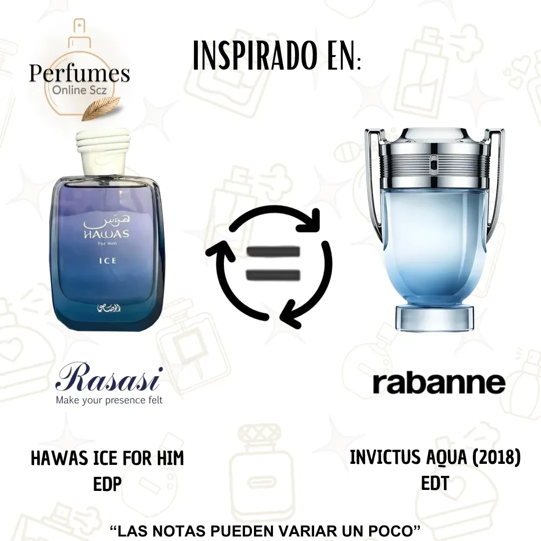 Decants HAWAS ICE EDP By Rasasi - Inspirado en INVICTUS AQUA EDT (2018) de Paco Rabanne.