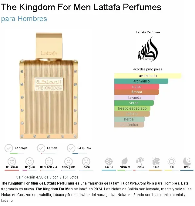 THE KINGDOM EDP 100 ML. By Lattafa - Inspirado en LE MALE ELIXIR PARFUM de Jean Paul Gaultier.